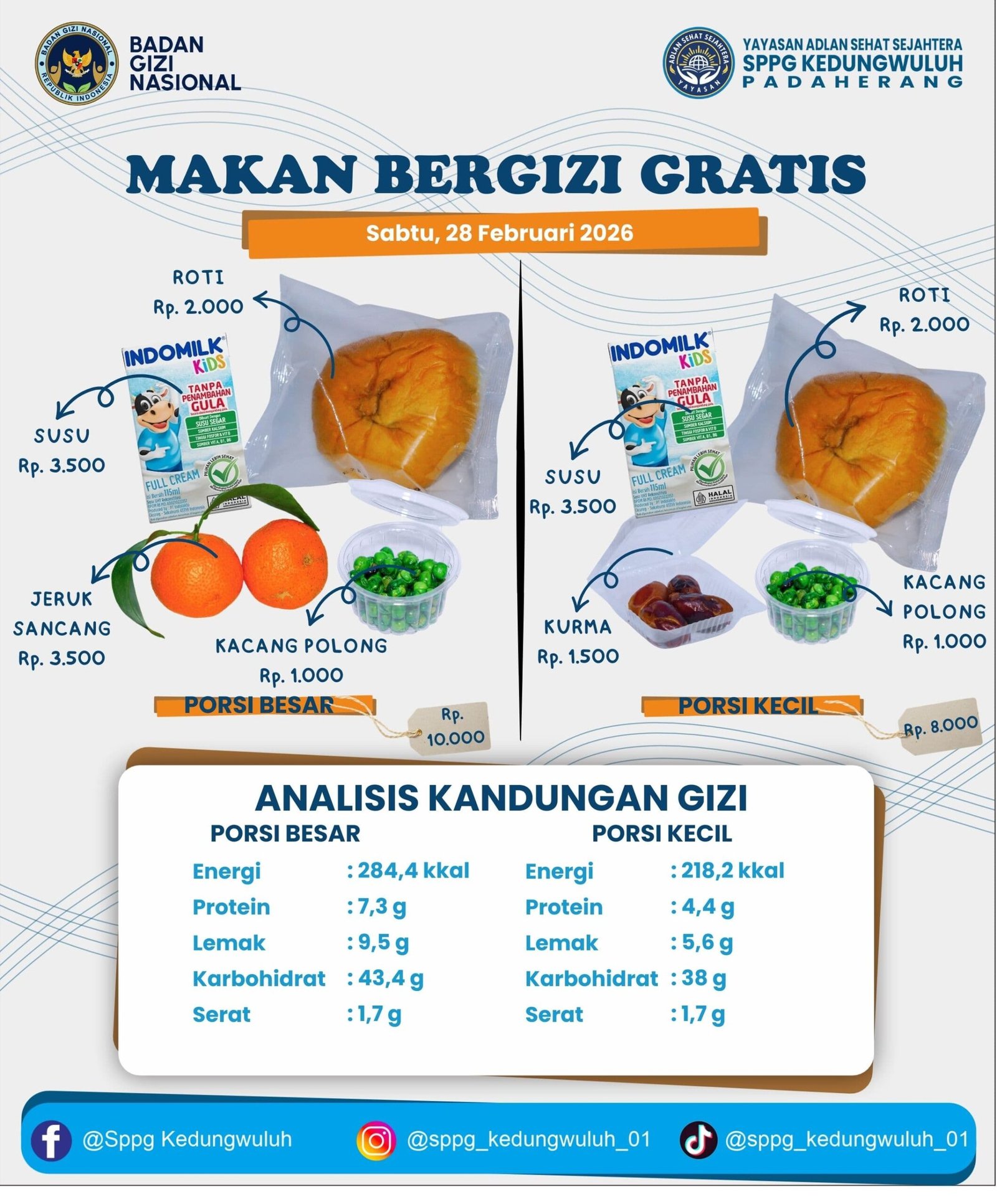 PANGANDARAN, Liputanpost.com – Satuan Pelayanan Pemenuhan Gizi (SPPG) Kedungwuluh dalam program Makan Bergizi Gratis (MBG) berkomitmen memberikan yang terbaik melalui penyediaan makanan bergizi seimbang, higienis, dan aman bagi anak sekolah. Minggu, (01/03/2026)