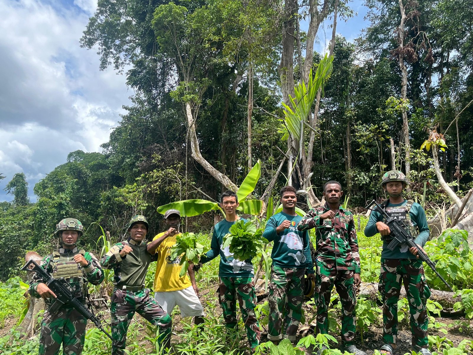 Maybrat, Papua Barat Daya, Liputanpost.com — Bentuk aplikasi kegiatan teritorial dengan masyarakat sekitar, Satgas Pamtas RI-PNG Kewilayahan Yonif 763/SBA Pos Afkrem melaksanakan panen hasil kebun bersama masyarakat Kampung Afkrem. Selasa, 21/04/2026.