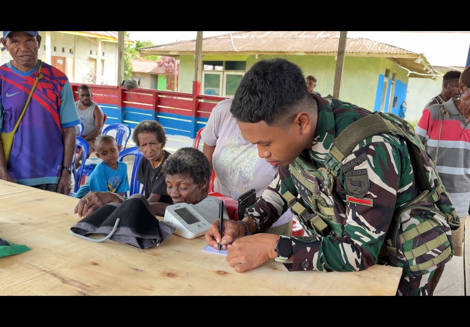 Pelaksanaan kegiatan pelayanan kesehatan ini bekerja sama dengan dr. Iqbal selaku dokter Satgas Yonif 763/SBA, yang secara langsung memberikan pelayanan medis kepada masyarakat.